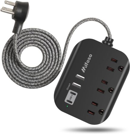 Travel Essentials – Mifaso Power Strip with USB, Compact Flat Plug Extension Cor…