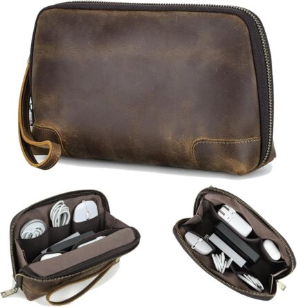 Contacts Crazy Horse Leather Travel Electronic Organizer Cables Chargers Accesso…