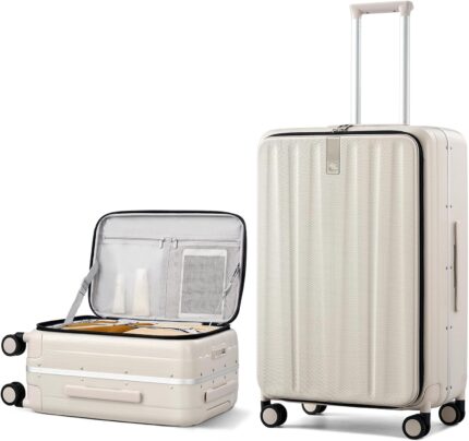 Carry On Luggage with Spinner Wheels, 8010S Aluminum Frame Zipperless Polycarbon…