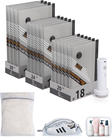 Price: (as of – Details) Product description Complete 18-Piece Travel Set: This kit includes 15 vacuum storage bags in 3