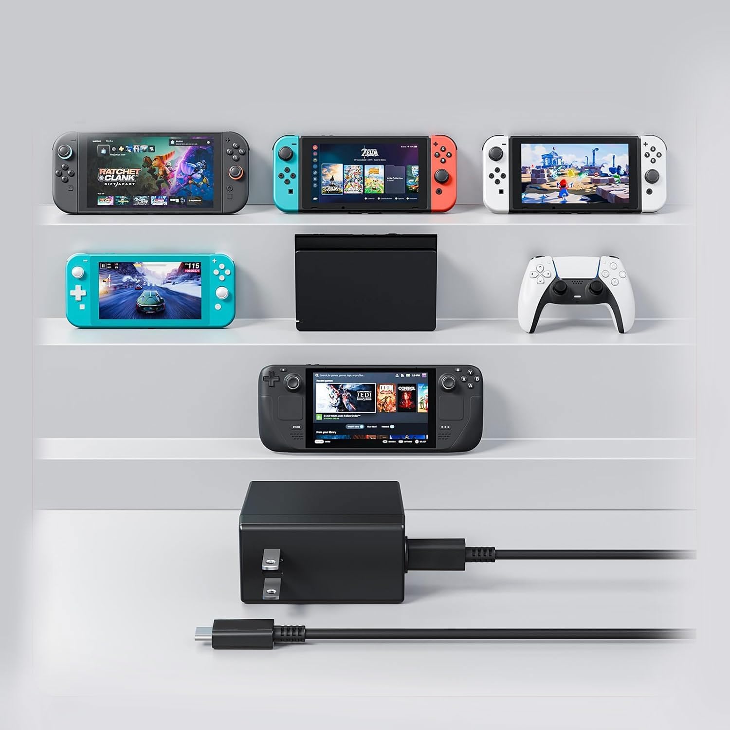 Wide compatibility: This Switch 2 power adapter adopts the integrated design style of Nintendo Switch 2, perfectly matching your console. It also supports Switch 1, Switch OLED, Switch Lite, and Steam Deck. One charger is compatible with multiple devices.