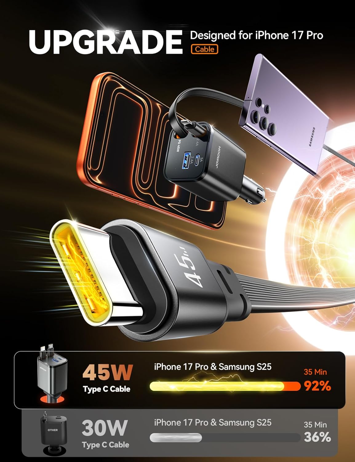 Innovation and Reliable Design – JOYROOM retractable fast car phone charger reduces the common need for frequent replacements, making it a innovation choice for those seeking an usb c car charger accessories. We are professional and care about the actual needs of every truck driver, which is why we offer you a 2025 new upgrade compact retractable car charger and 36-month to solve any problems you may encounter when using car charger