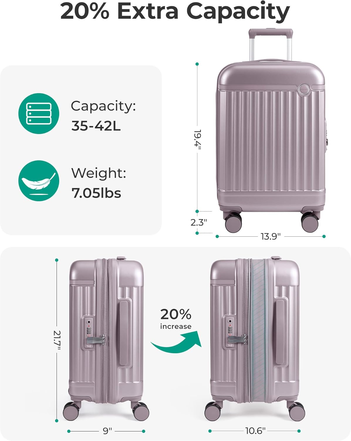 Expanded Capacity for Every Adventure: Travel with peace of mind knowing our expandable carry on luggage with wheels provides an additional 20% packing space. Whether it’s a quick business trip or a leisurely getaway, you can pack more efficiently without compromising on organization. The 42L capacity (35L + 7L) accommodates all your essentials with ease.