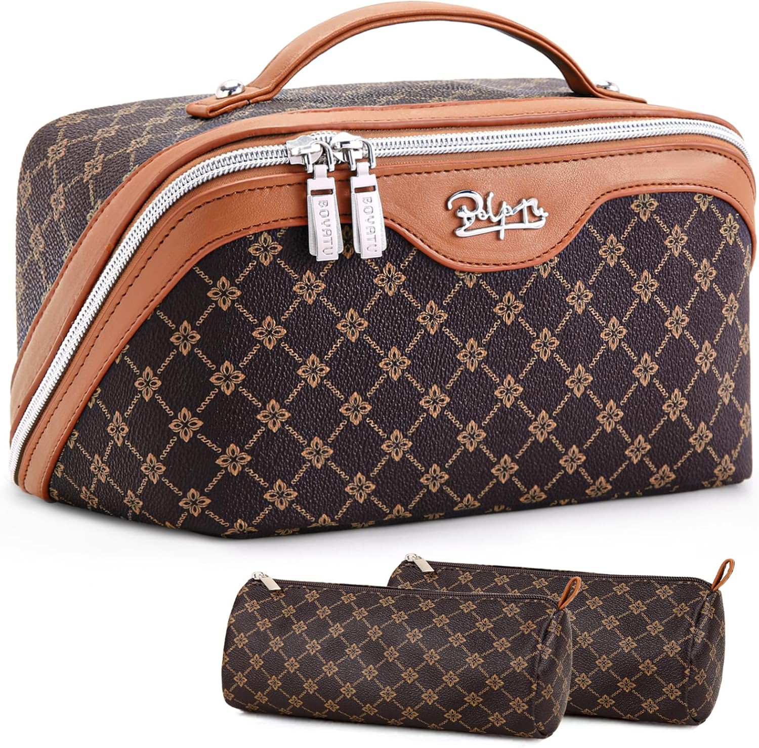Large Capacity Makeup Bags with Compartments: This makeup bag offers enough space to organize your cosmetic and skincare.It is 9.25″L*5″H*5.1″W and weight about 1 lb.