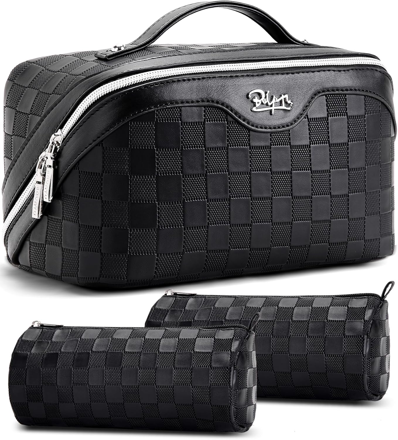 Portable Travel Toiletry Bag for Women with Handle: This checkered toiletry travel bag is a great choice and ideal companion for travel or everyday using.It has upgraded interior clean bag prevents liquid leaks and blocks odors from spills.