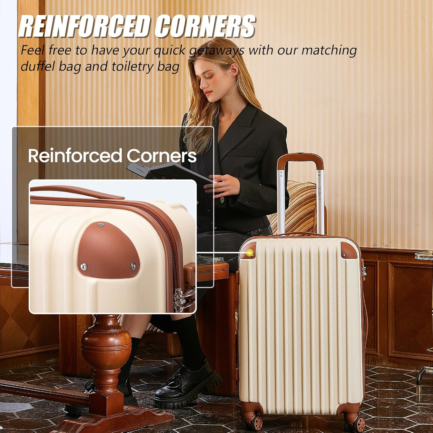 【High-Quality Materials】The suitcase set is made of more durable and lightweight high-quality ABS material, effectively adding a protective layer to the hard shell luggage sets, making them more impact-resistant.