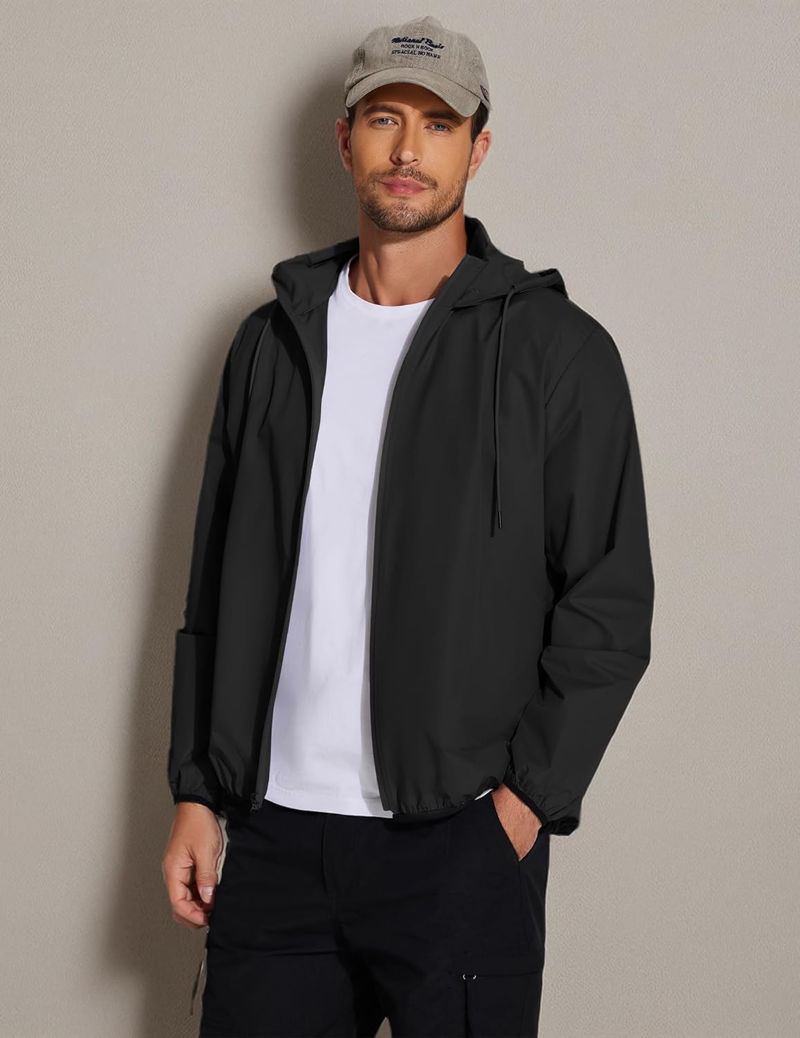COOFANDY Men’s Light Rain Jacket with Hood Packable Waterproof Raincoat Golf Rai…