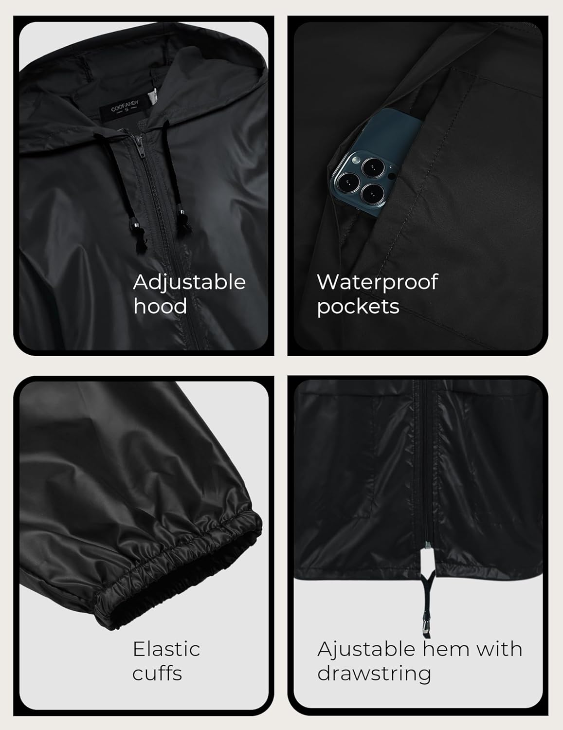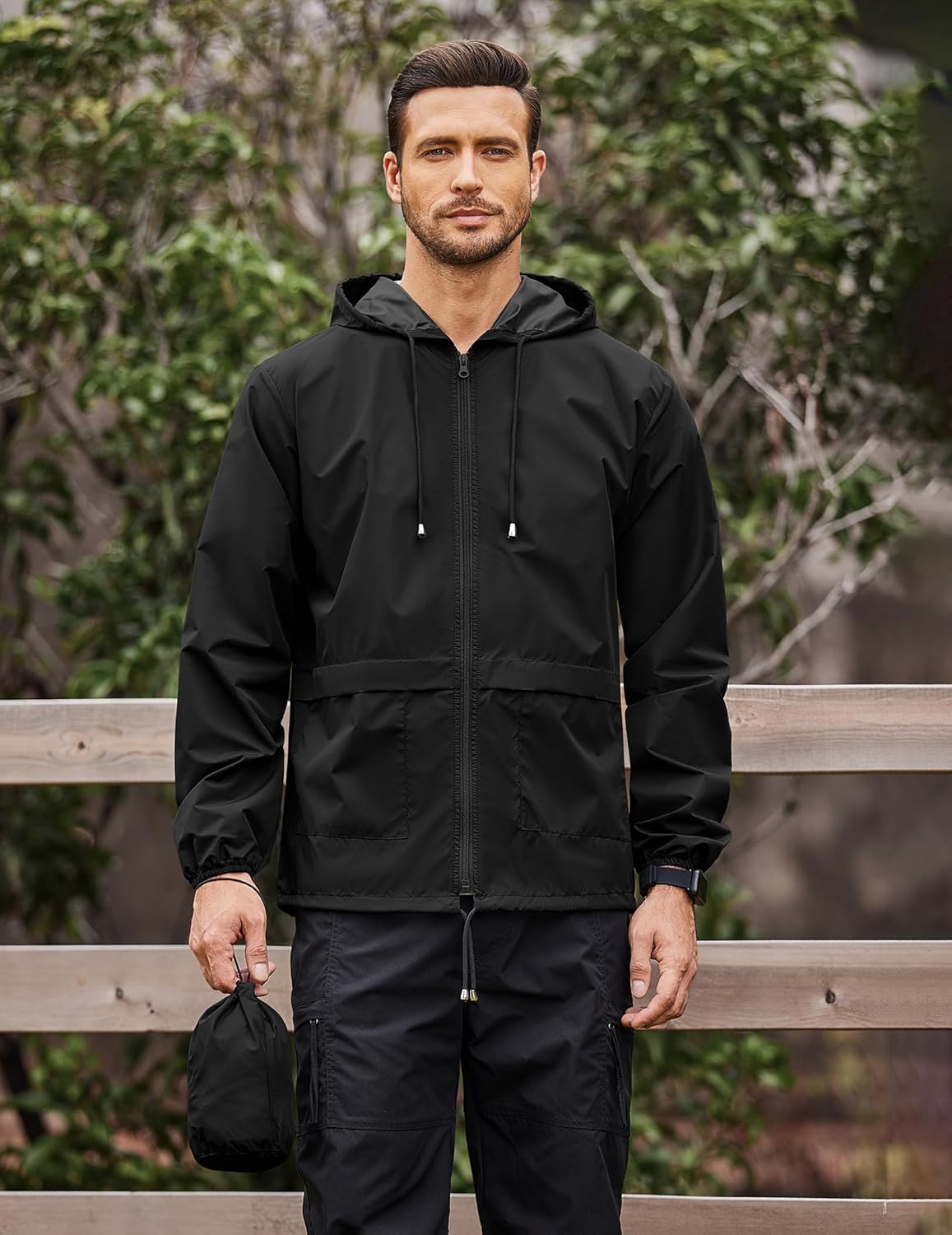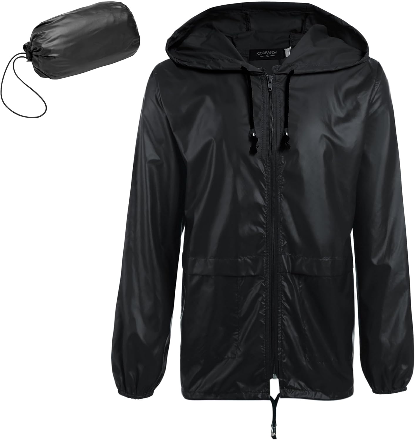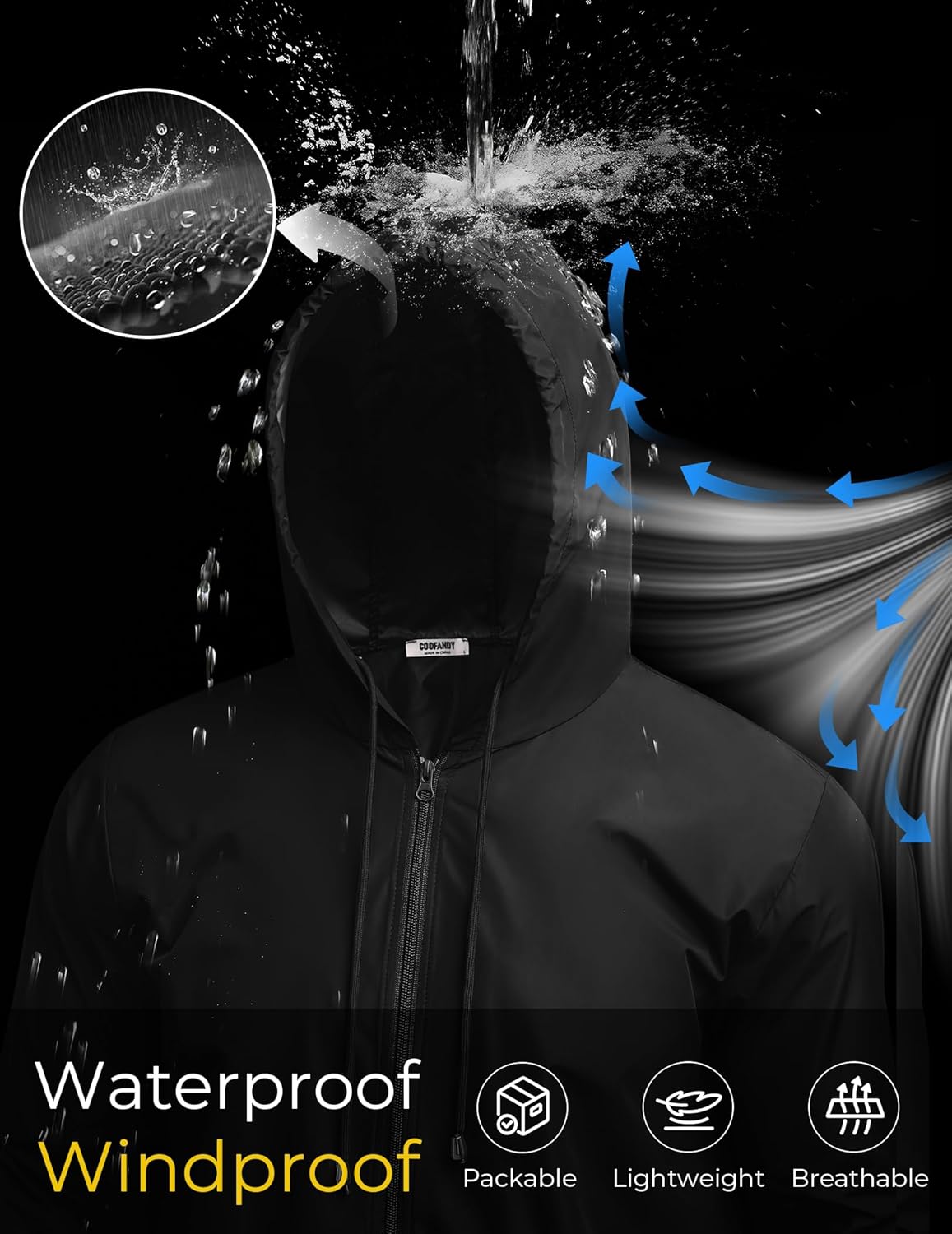 COOFANDY Mens Packable Rain Jacket Lightweight Waterproof Raincoat with Hood Out…