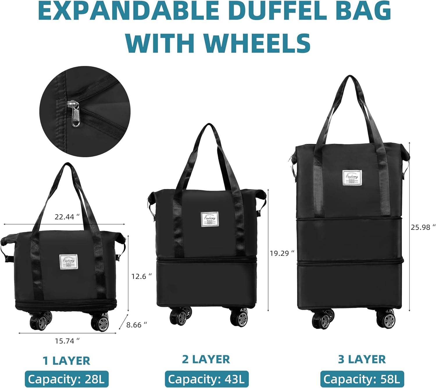 Finnhomy 50L Expandable Rolling Duffel Bag with Wheels Foldable Duffel Bag for T…