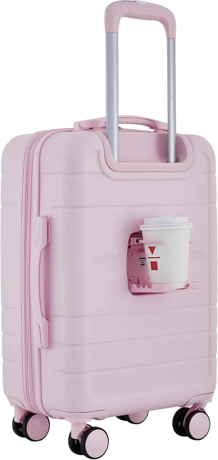 French Connection St. Martin Carry-On Luggage with Cup Holder/USB Ports, Pink A …