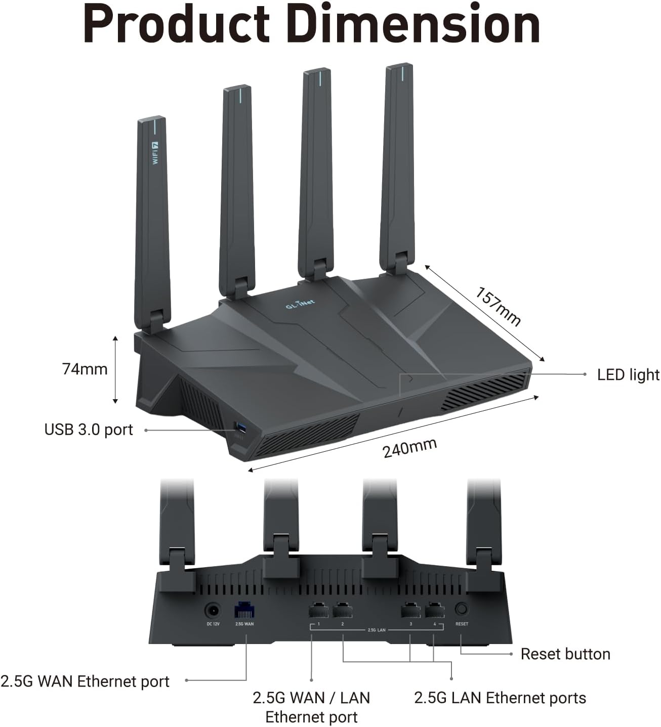 【MLO + 4K-QAM Breakthrough】Flint 3e represents the future of wireless router, delivering ultra-fast speeds, significantly reduced latency, and improved connectivity in high-density environments through cutting-edge innovations like Multi-Link Operation (MLO), enhanced OFDMA, 4K-QAM, preamble puncturing and Multi-RUs.