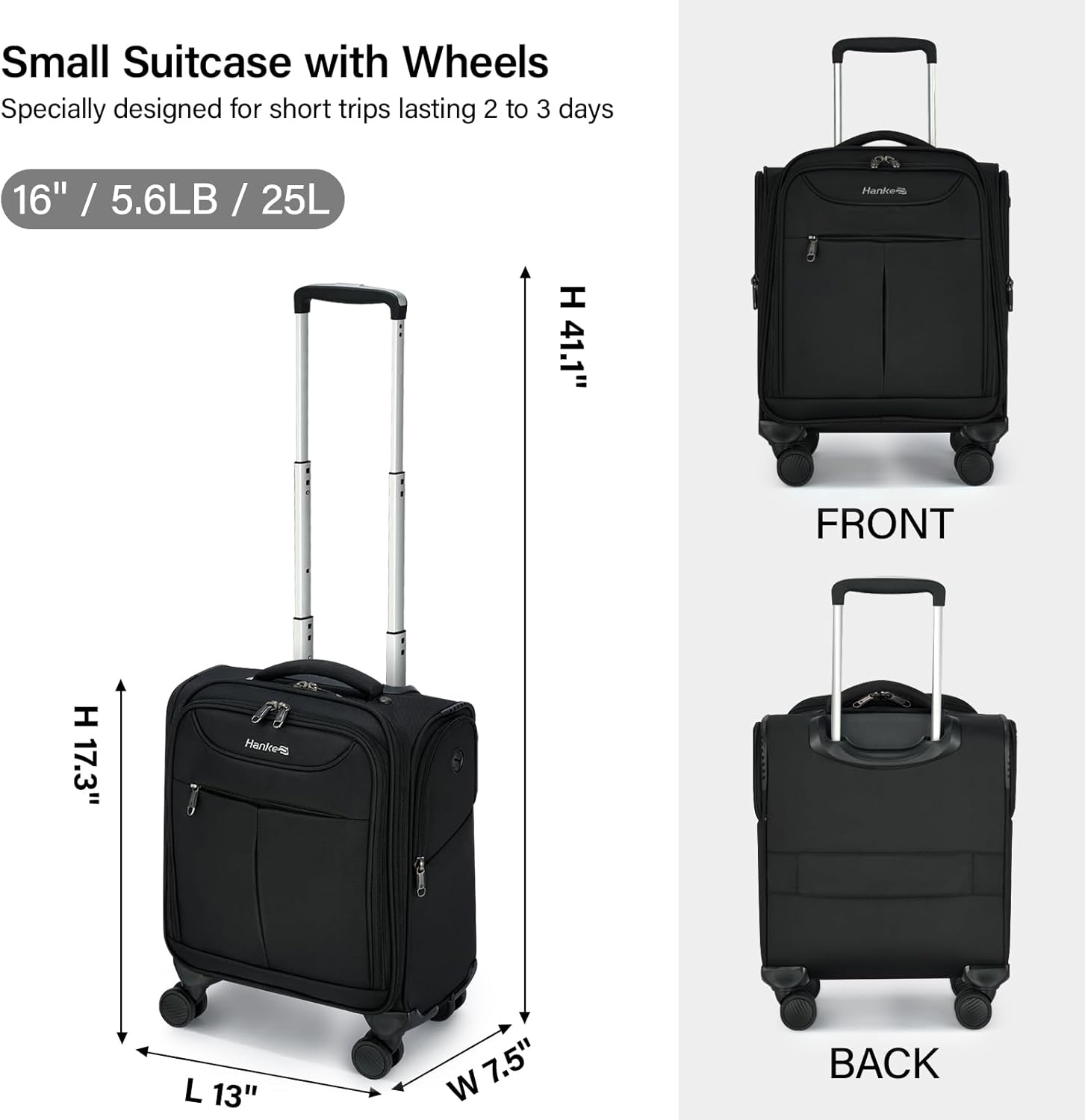 【FAA APPROVED FOR ALL CABINS】Airline approved carry on luggage Ultra-compact 16″ carry on luggage fits under airplane seats (Delta, United, Southwest, etc.) and as a personal item travel bag. Perfect for business trips ,overnight or weekend /short travel.