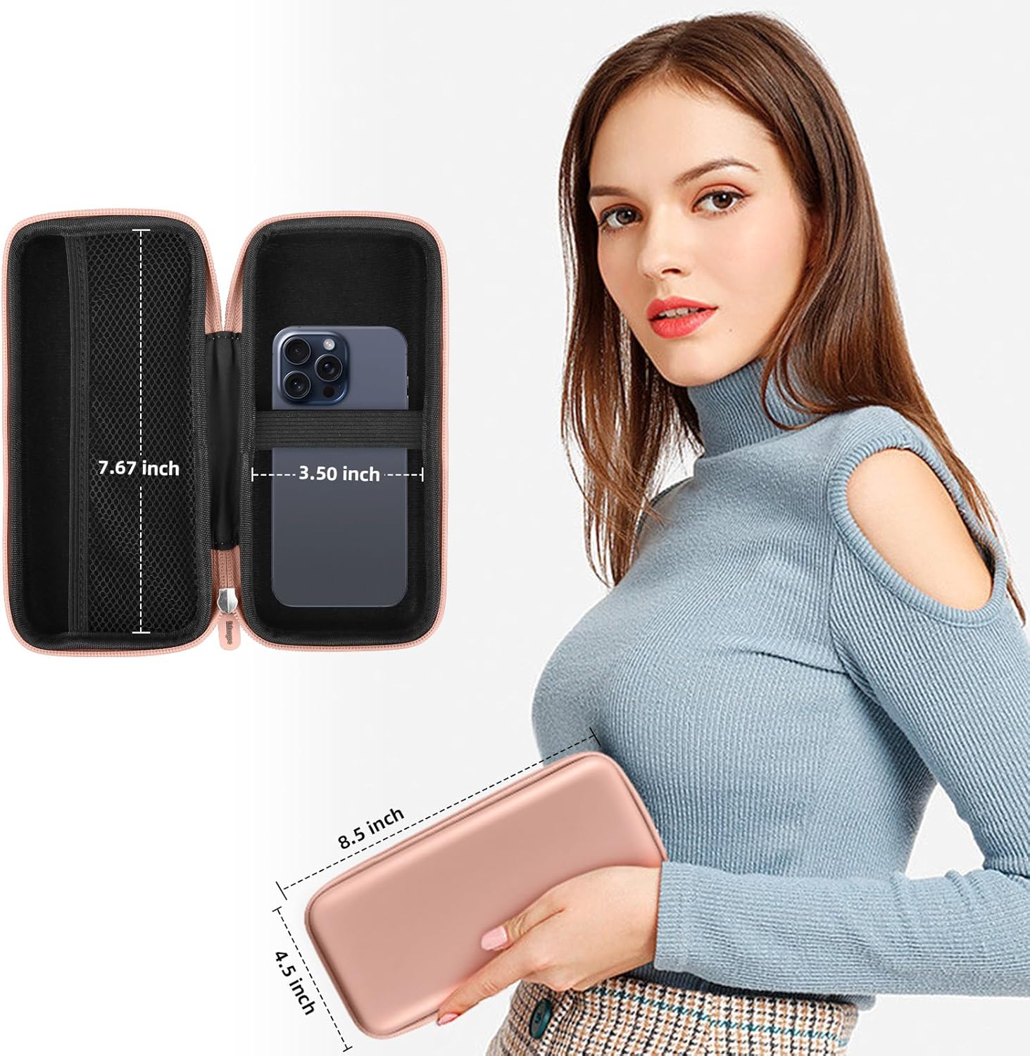 Bigger by Your Demend!: Upgraded Carrying Case Size External dimension: 8.5” (L) x 4.5″ (W) x 2″ (H); Inner dimension: 7.67”(L) x 3.5”(w) x 1.8”(H); Compact and lightweight size case easy to carry into backpacks, handbags or laptop bags without taking up space; electronic organizer travel case can be fitted with MacBook Charger but Not fit with thicker than 2 inches devices, please choose larger size electronics organizer