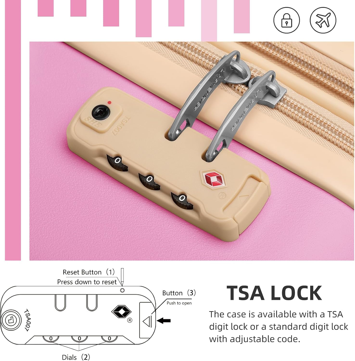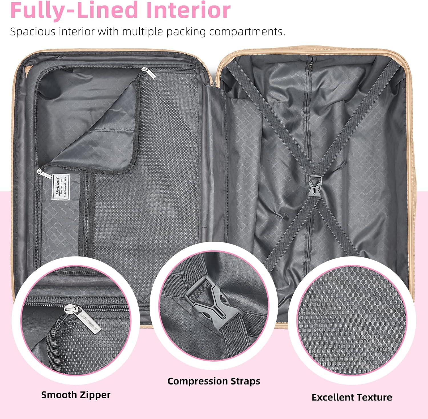 Luggage with TSA Lock for Secure Travel: Stay safe and hassle-free with our TSA-approved combination locks. Zippers are not easy to be pierced by sharp tools, such as pens, that protects your stuffs in luggage and privacy more better. Full-zip interior divider and cross straps for increased packing organization