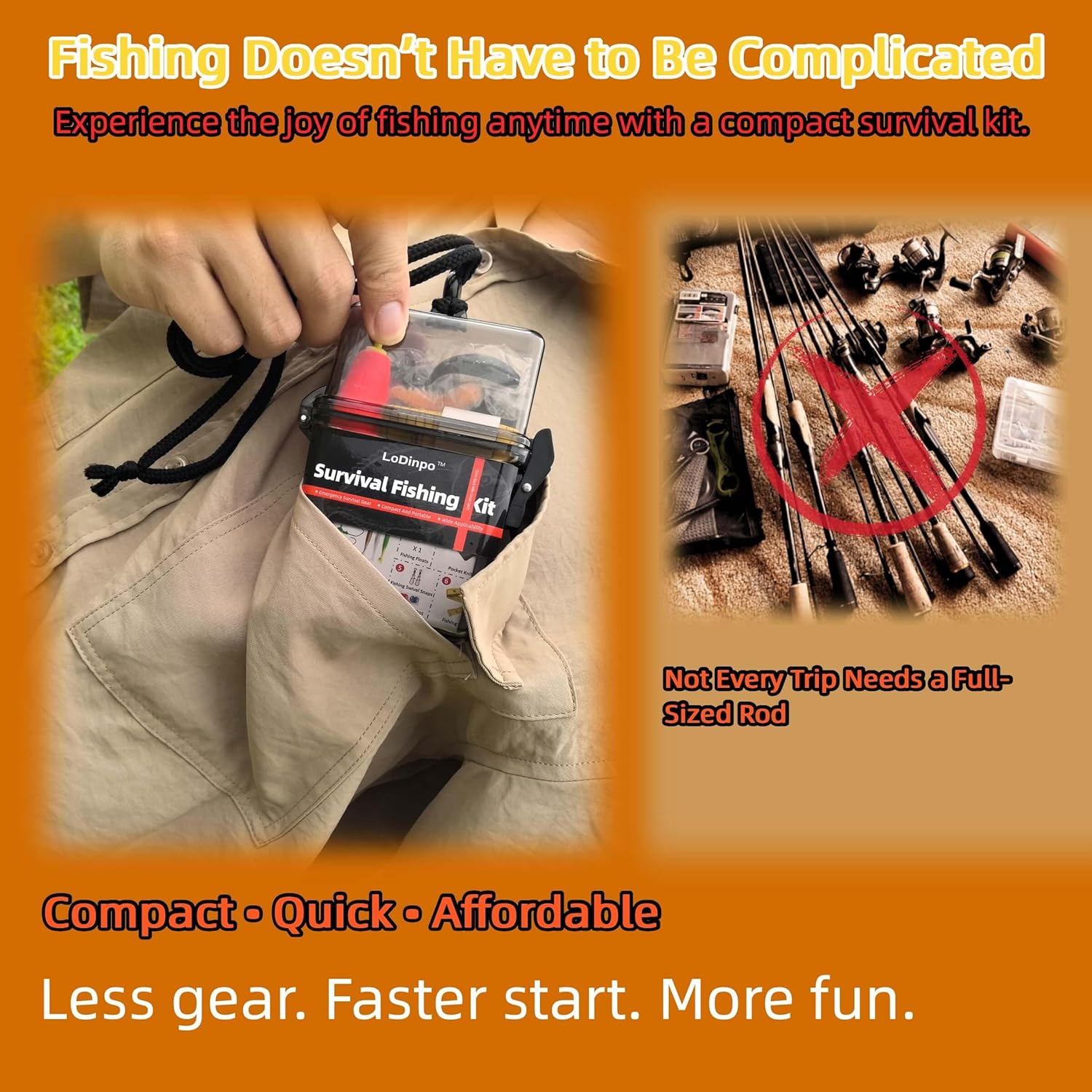 High-quality materials, durable and reliable:LoDinpo Mini Emergency Fishing Box features high-quality, durable materials, resisting outdoor pressures and impacts. Its waterproof design keeps your gear dry and safe during unpredictable emergencies.