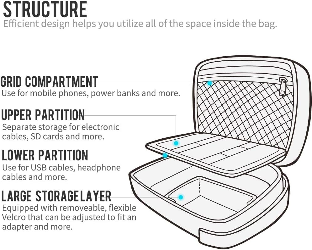 【Keep Everything in One Place】 They will have additional space because of the double-layered design, which provides more space for cables, power banks, chargers, SD cards, USB cords, adapters, and other accessories.