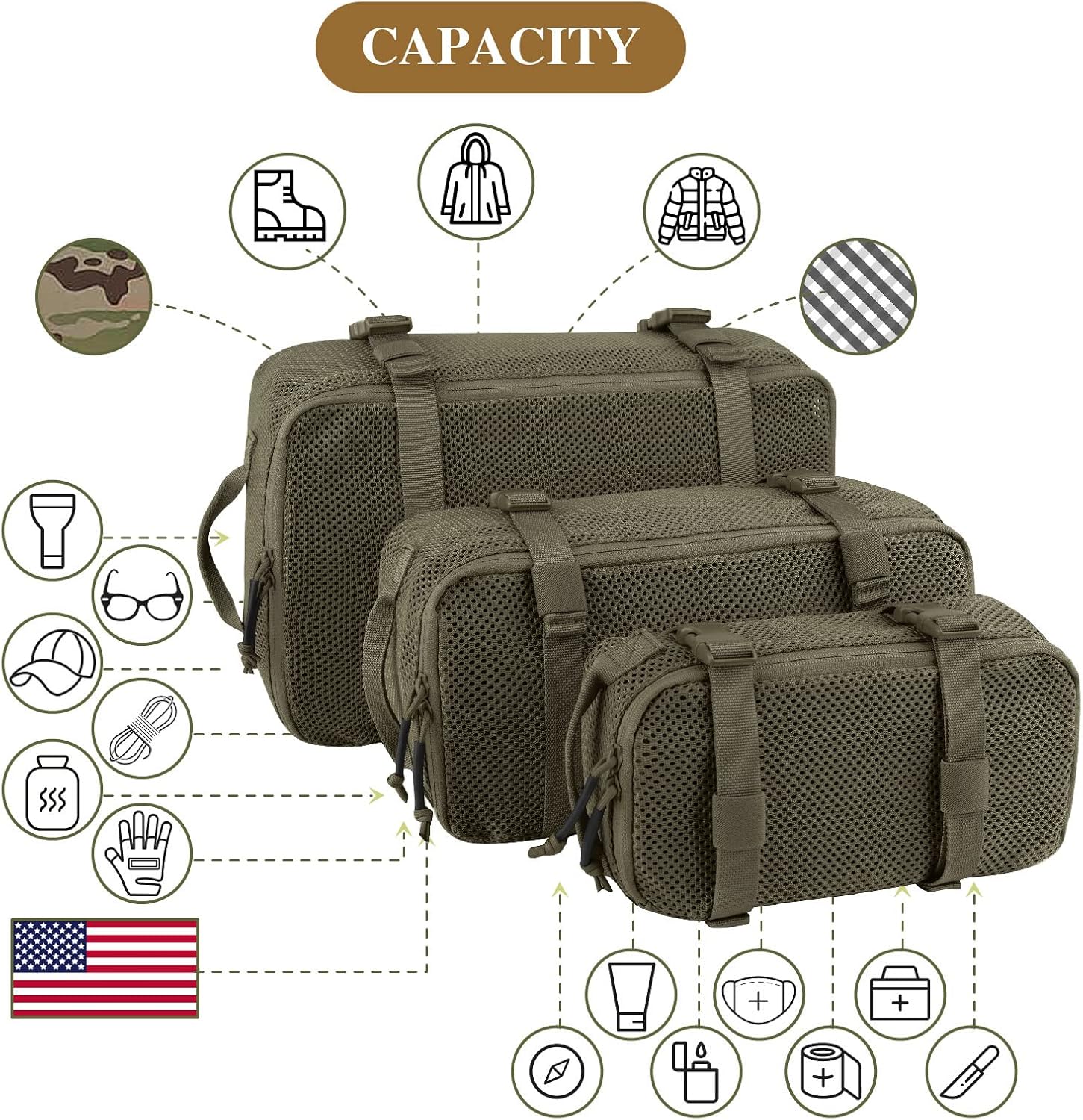 PETAC GEAR 3 PCS Tactical Modular Packing Cubes, Large Capacity Mesh Storage Bag…