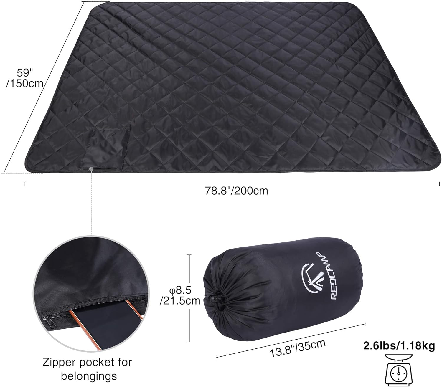 Multipurpose: An ideal camping blanket for cold weather to keep you warm, great for picnic, lawn, travel, sports events, concerts. Or as a pet blanket to protect your car seat or sofa from dirt and dust