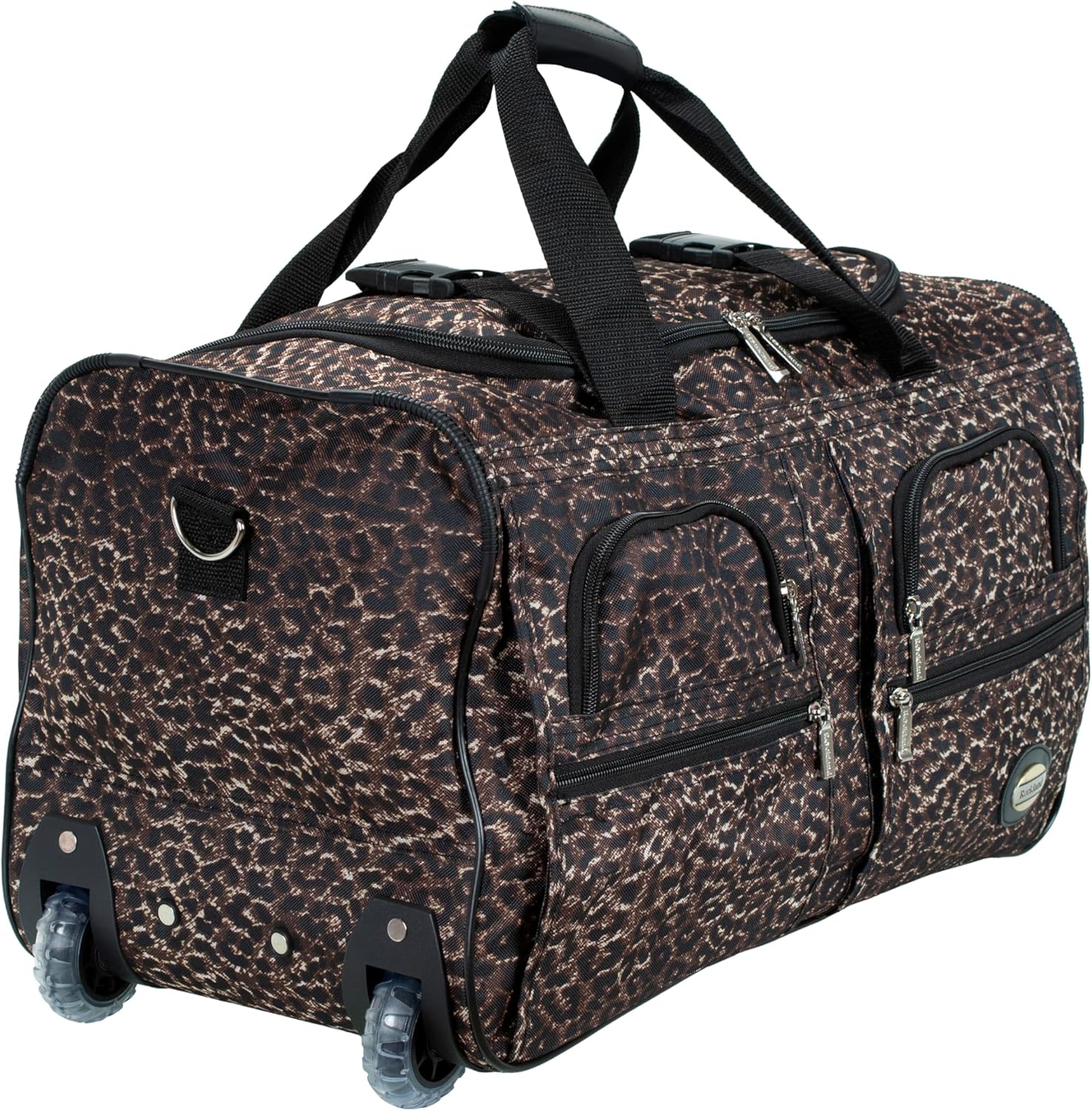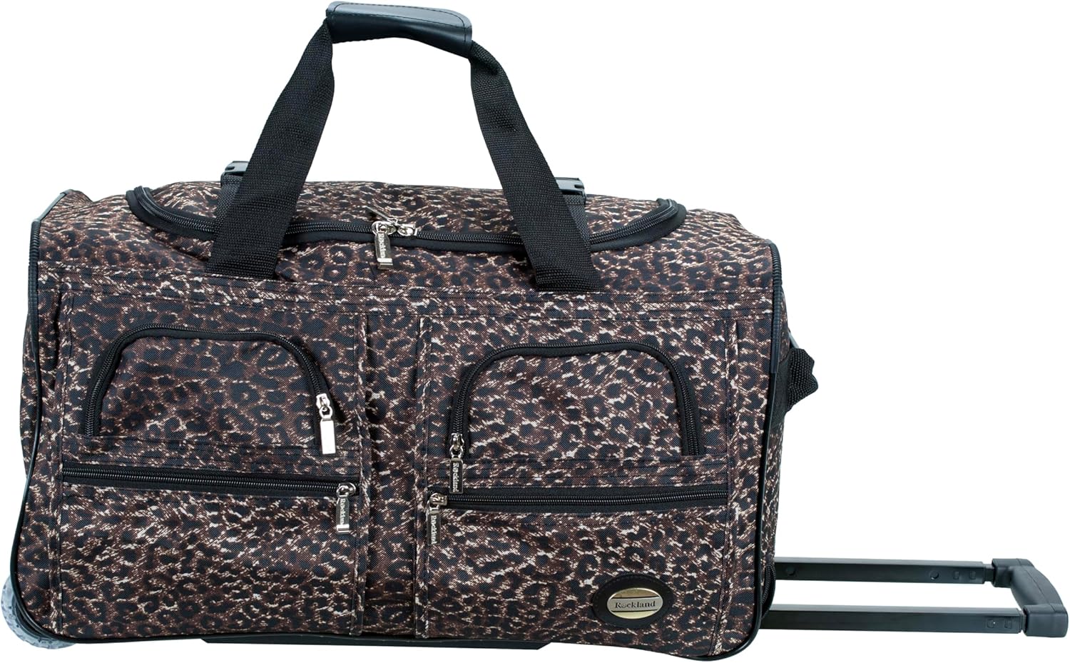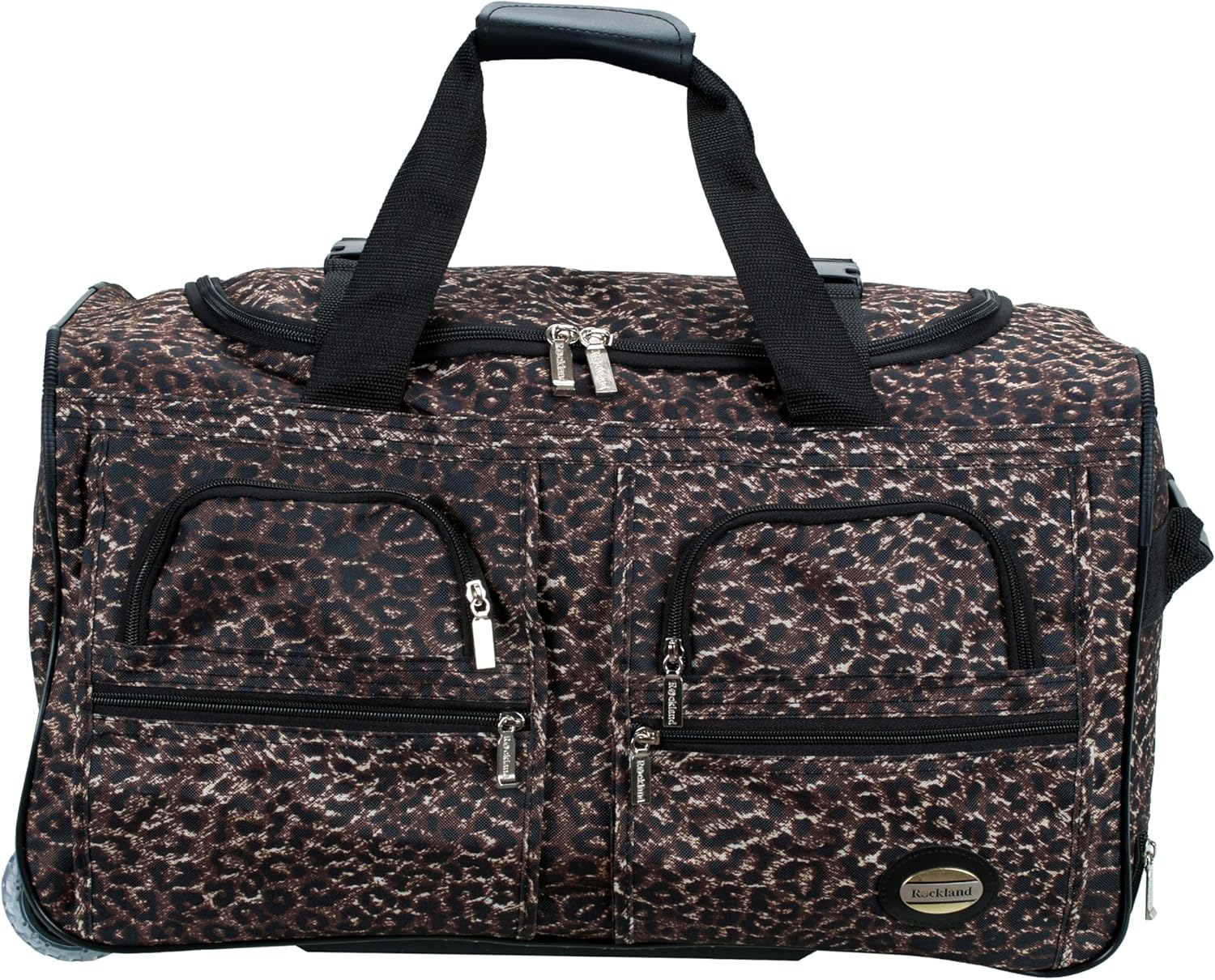 Rockland Rolling Duffel Bag, Brown Leopard, 100% polyester, 22-Inch