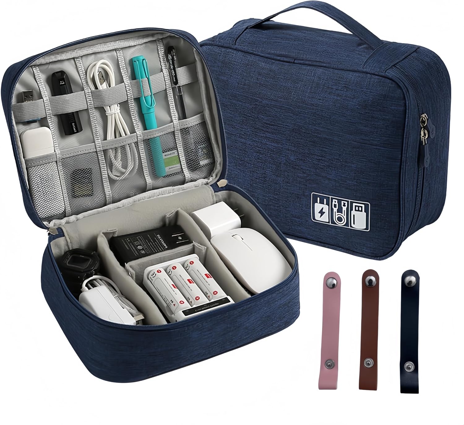 Single-layered Electronic Accessory Storage Tote | Data Cable Organizer | 3 Leat…