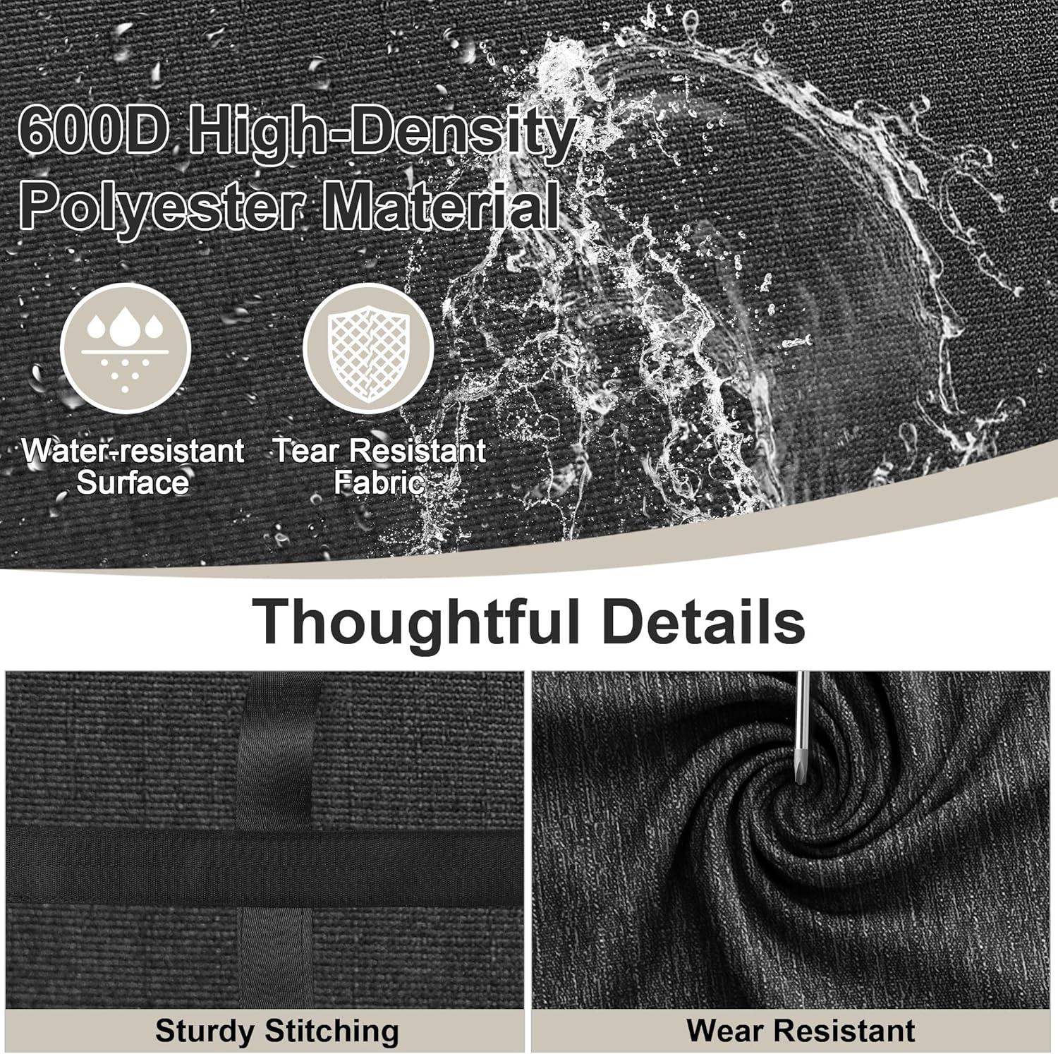 Durable & Heavy-Duty: Crafted from water-resistant, tear-resistant polyester fabric with sturdy stitching and smooth metal zippers, this bag is exceptionally durable. Fully wrapped webbing strap enhances weight distribution for effortless carrying of heavy items