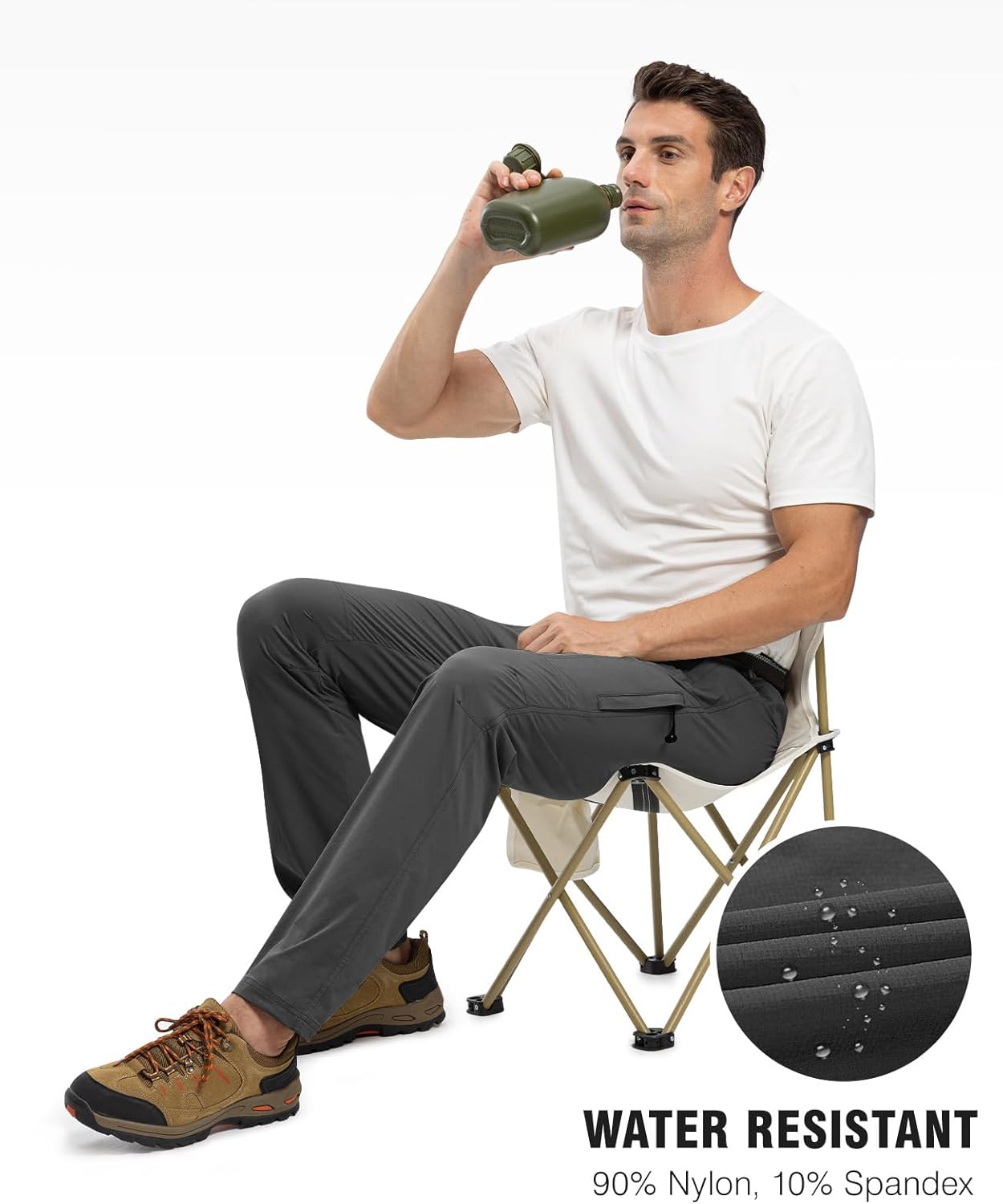 TBMPOY Men’s Lightweight Hiking Pants with Belt 5 Zip Pockets Waterproof Quick-D…