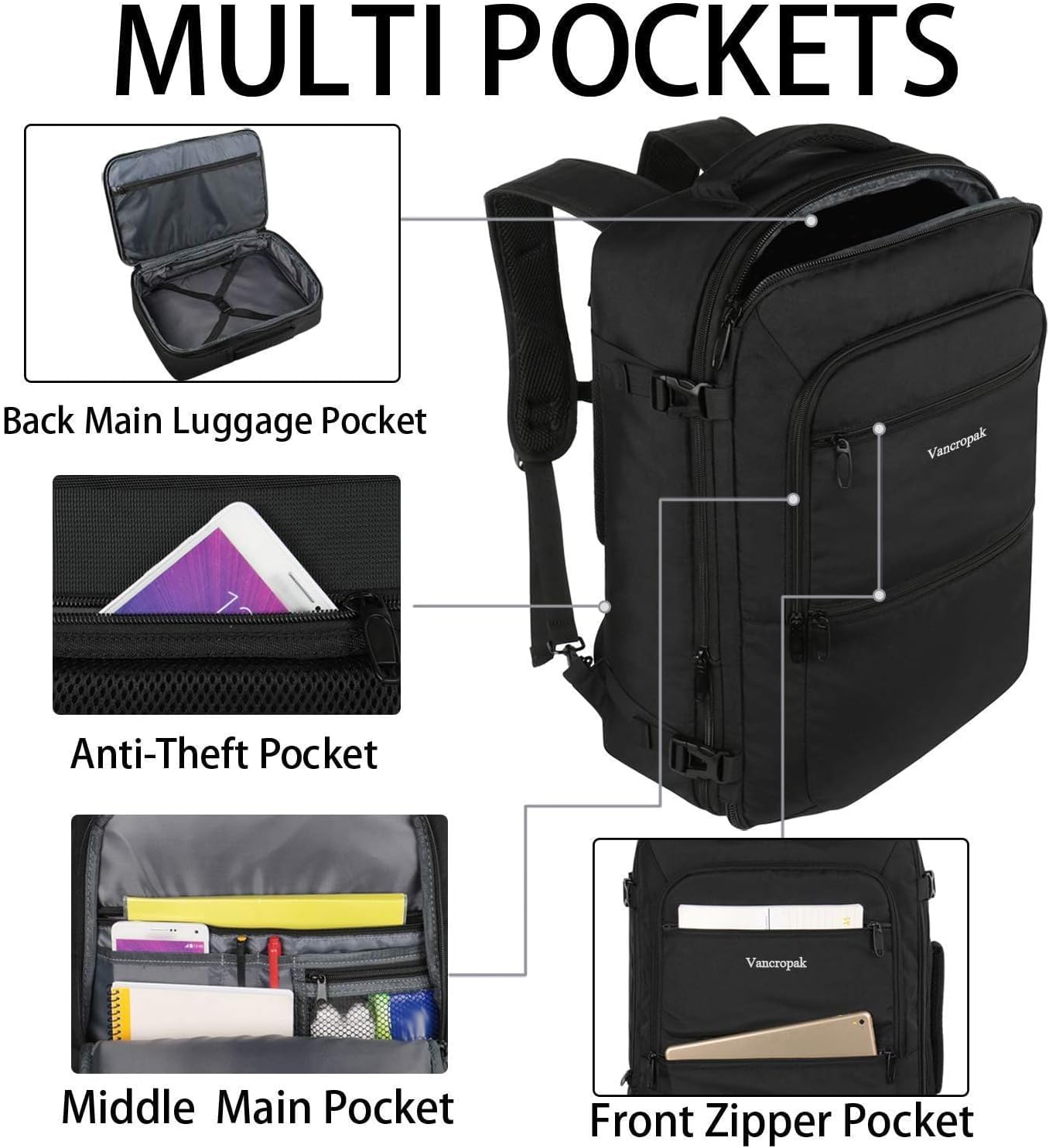 Vancropak Carry On Backpack, 40L Expandable Extra Large Travel Backpack, Flight …