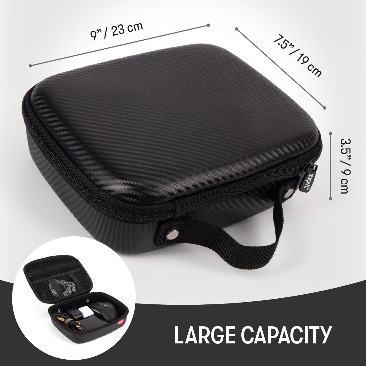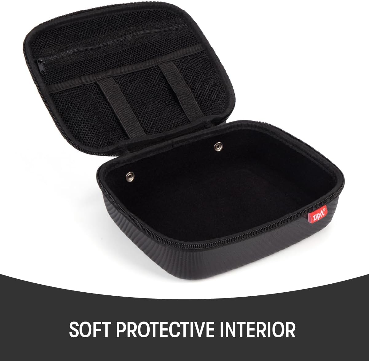 Keep your tech essentials protected and organized with this ZIPIT carbon-style EVA electronics organizer. Designed with a structured hard shell, it helps safeguard charging cables, adapters, power banks, and small accessories during travel or daily carry. Inside, elastic straps and a zippered mesh pocket keep everything in place and easy to access. Unlike most hard tech cases, this organizer is machine washable, making it a practical choice for frequent travelers and everyday use. Finished with a compact form and a built-in carry handle, this durable electronics case delivers smart organization without bulk. Backed by ZIPIT’s lifetime warranty, it’s a reliable solution for keeping your tech gear clean, protected, and ready to go.