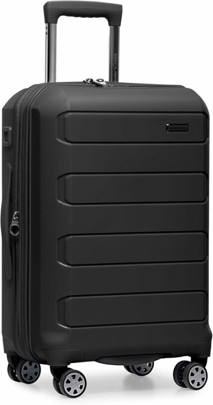 Traveler’s Choice Pagosa Indestructible Hardshell Expandable Spinner Luggage, Bl…